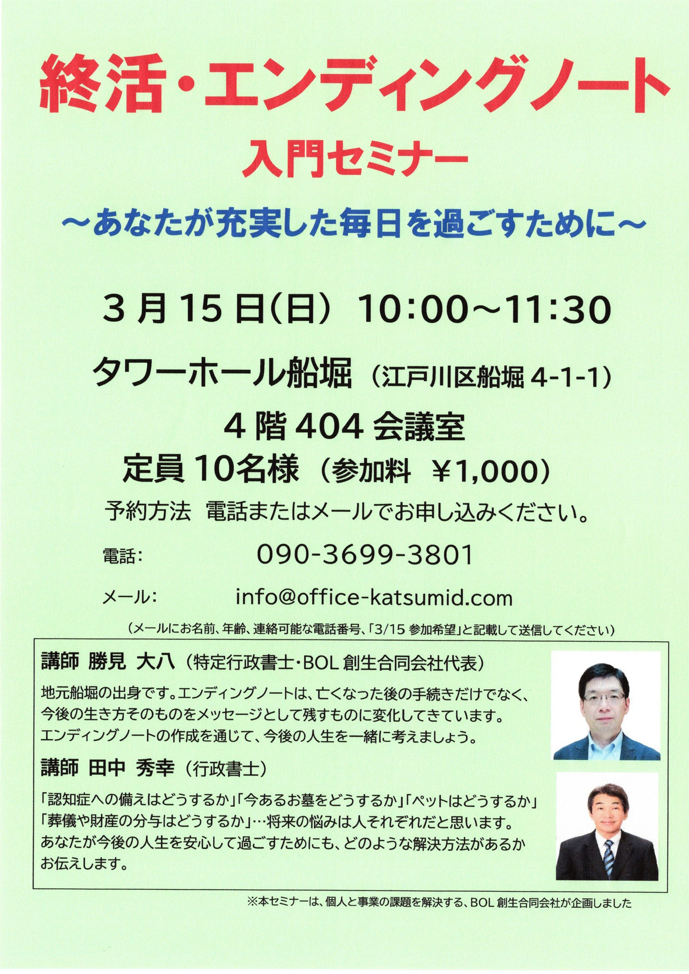 予約方法 当ホームページのお問合せフォームの「お問い合わせ内容」に、お名前、年齢、連絡可能な電話番号、「3/15参加希望」と記載して送信してください。